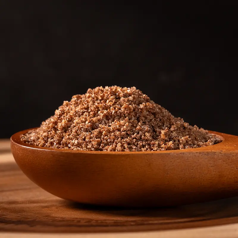 Because it is not highly refined, it retains naturally occurring trace minerals, including magnesium, calcium, and potassium. These trace minerals soften salinity and give the sweetness of black garlic more structure and balance.